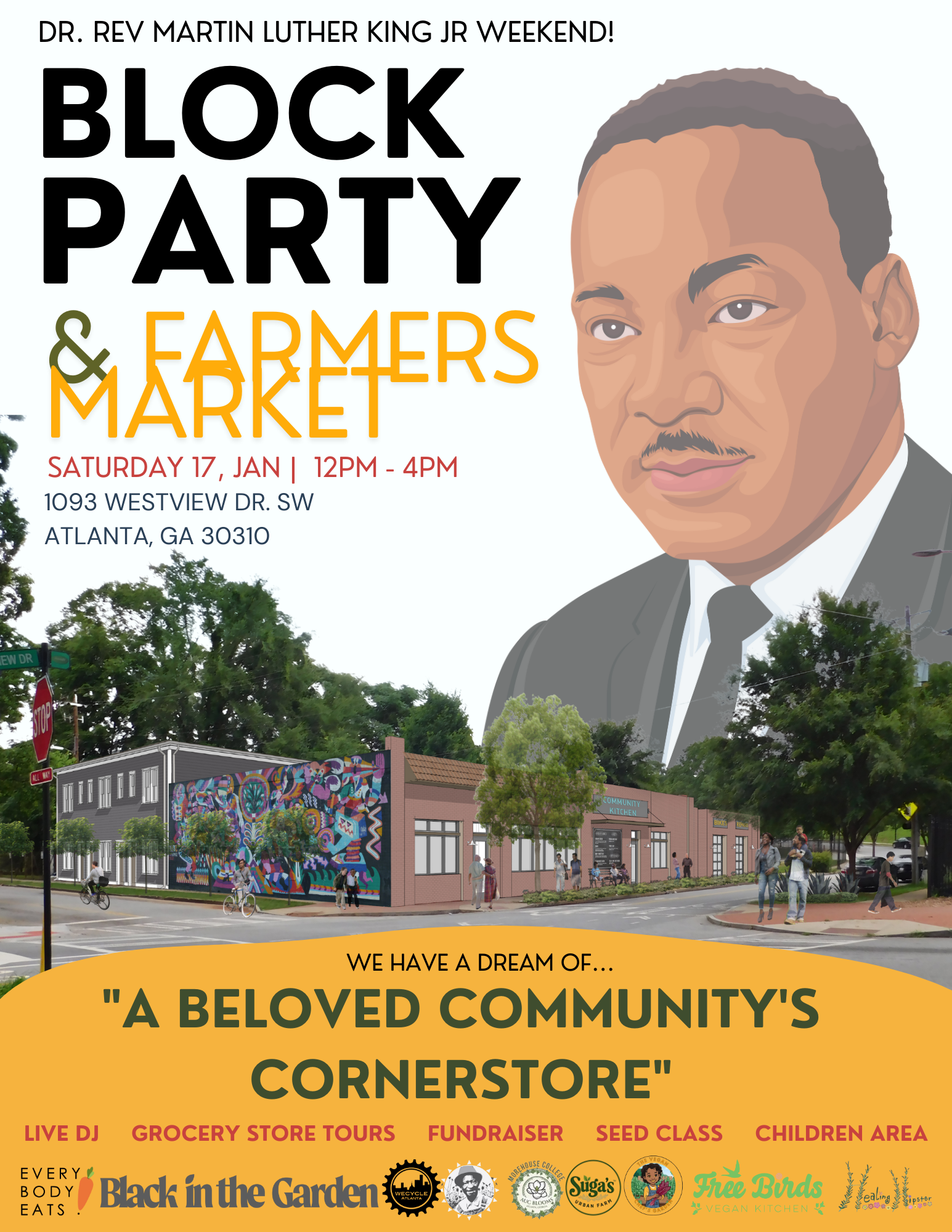 What would the cornerstore in Dr. Martin Luther King Jr. Proposed "Beloved Community" look like and how would it serve it's people? Would it go on in the manner like most cornerstores in urban communities, extracting money while not putting anyting of substance back into the community from programming to produce, or would it serve as a beacon for health and food equity, and a place for community members to socialize with full hearts and stomachs! Surely it would be the later.